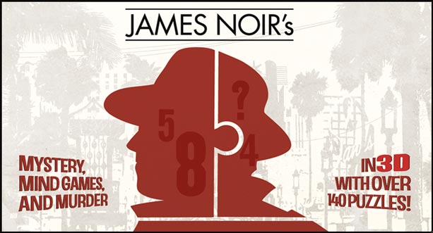 The presentation is interesting, too. Chapter dividers take the form of typical noir-genre advertising that is reminiscent of Raymond Chandler book covers. The quiz show takes place on a tacky set, complete with a faceless, shadowy audience. Annoying jingles play out as Darnby reels off catchphrases and you solve puzzle after puzzle. This is then offset by the few crime scenes that offer brief glimpses at a darker Hollywood underbelly. The game spends very little time exploring this, and some fleshing out would have been extremely welcome, although certain things come into play later, which would be a shame to ruin. It's a bit silly at times, and occasionally, there are some fairly glaring typographical errors in the text, but there's a certain charm to James Noir that is impossible to ignore.